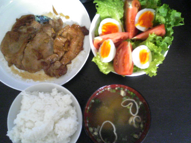 今週は豚のしょうが焼きと ゆでたまごのサラダを作りました。 すごい簡単な料理なはずなのに 用意に異様に時間がかかる・・・ 料理する時間に対して食べる時間なんてあっという間だというのに。 まあ料理ってそんなもんな気もしますが、 もう少し手際良く料理したいもんだ。 味はなかなかおいしかったのでまだよかったが。
